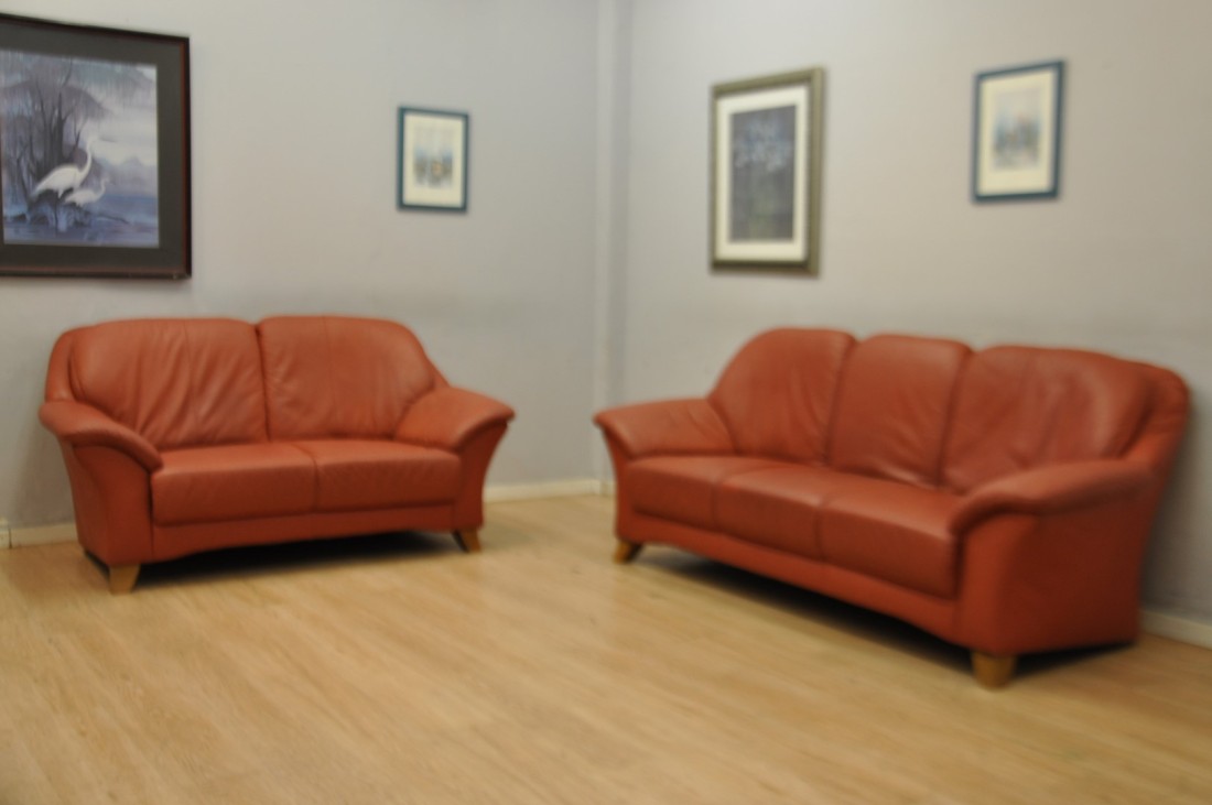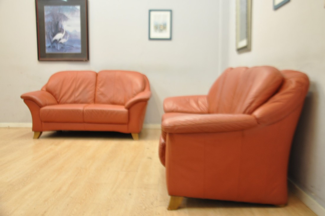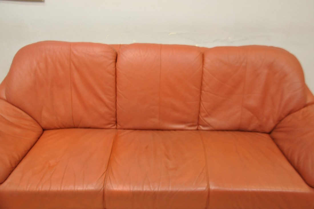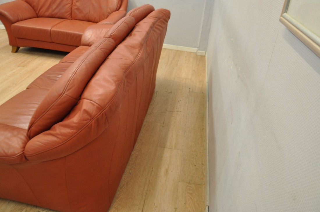 beau salon en vrai cuir de couleur terracotta