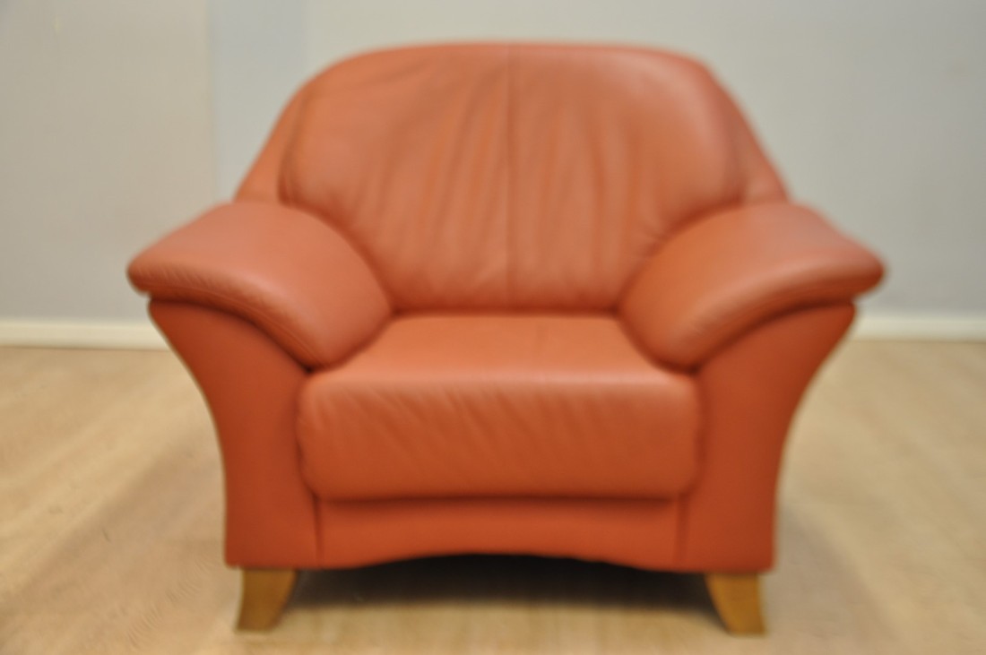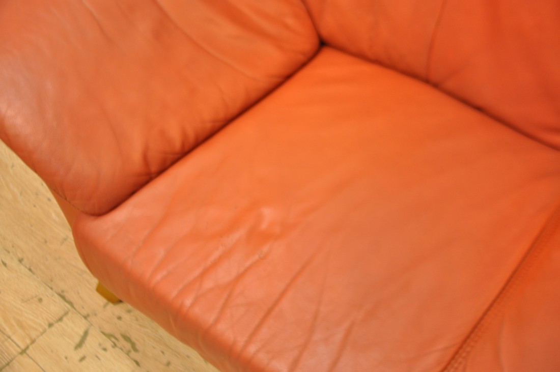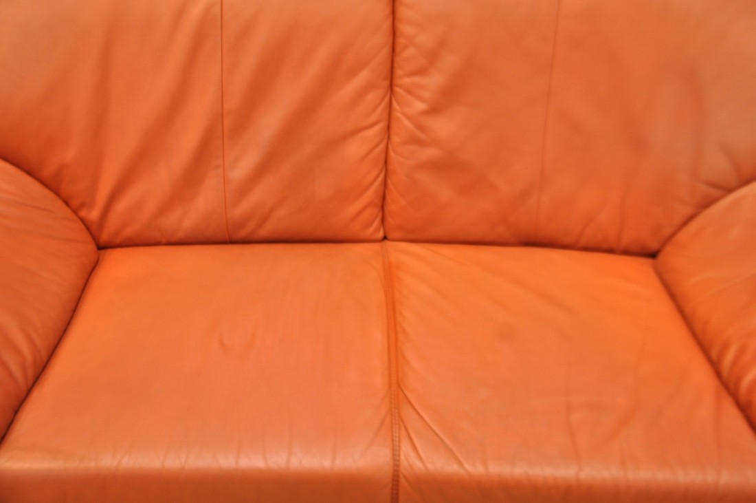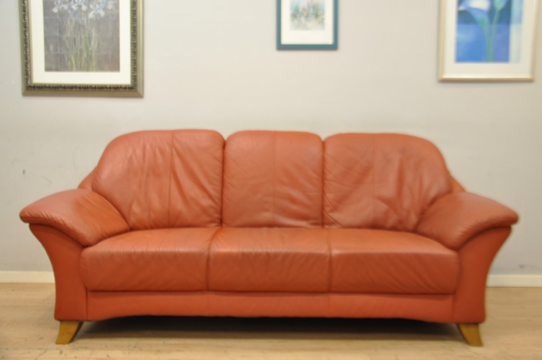 beau salon en vrai cuir de couleur terracotta