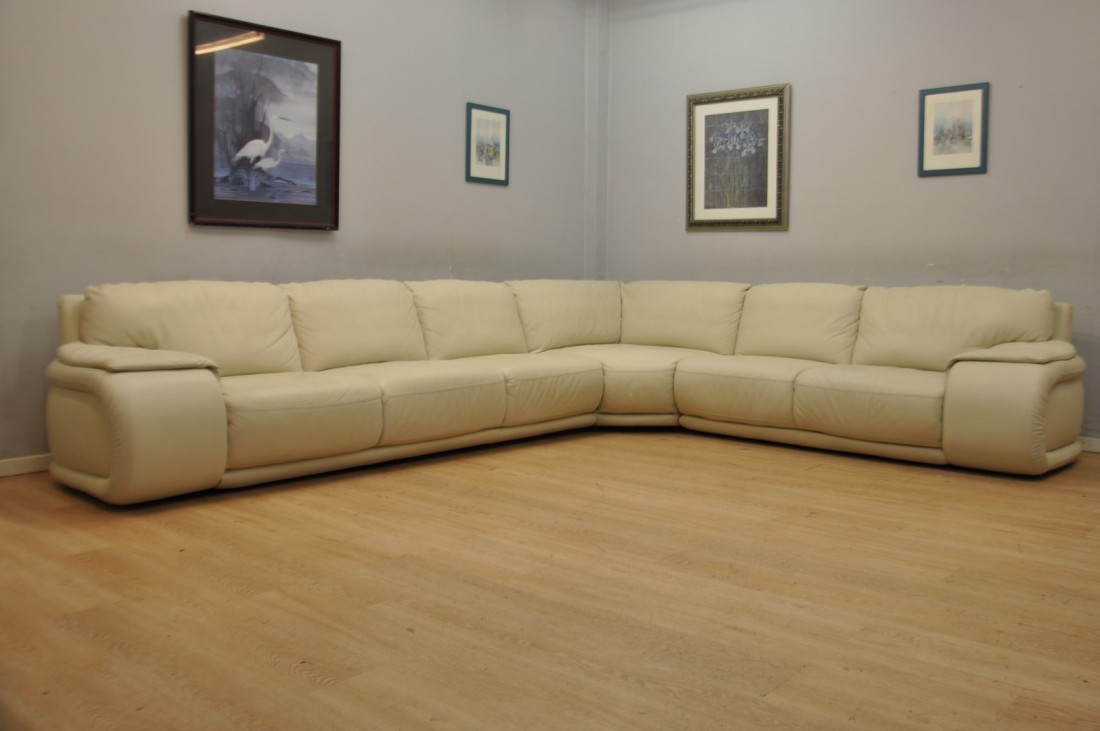 superbe méga grand salon en vrai cuir de couleur beige clair (un peu plus clair que sur les photos)