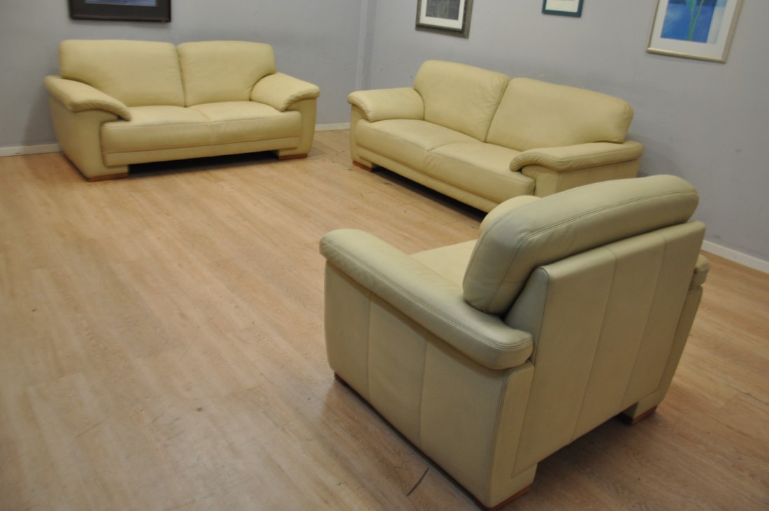 Très beau salon en vrai cuir de couleur beige clair (un peu plus clair que sur les photos)