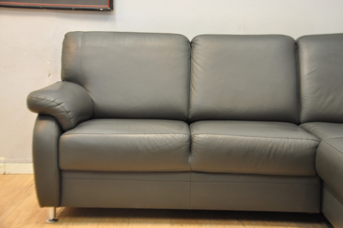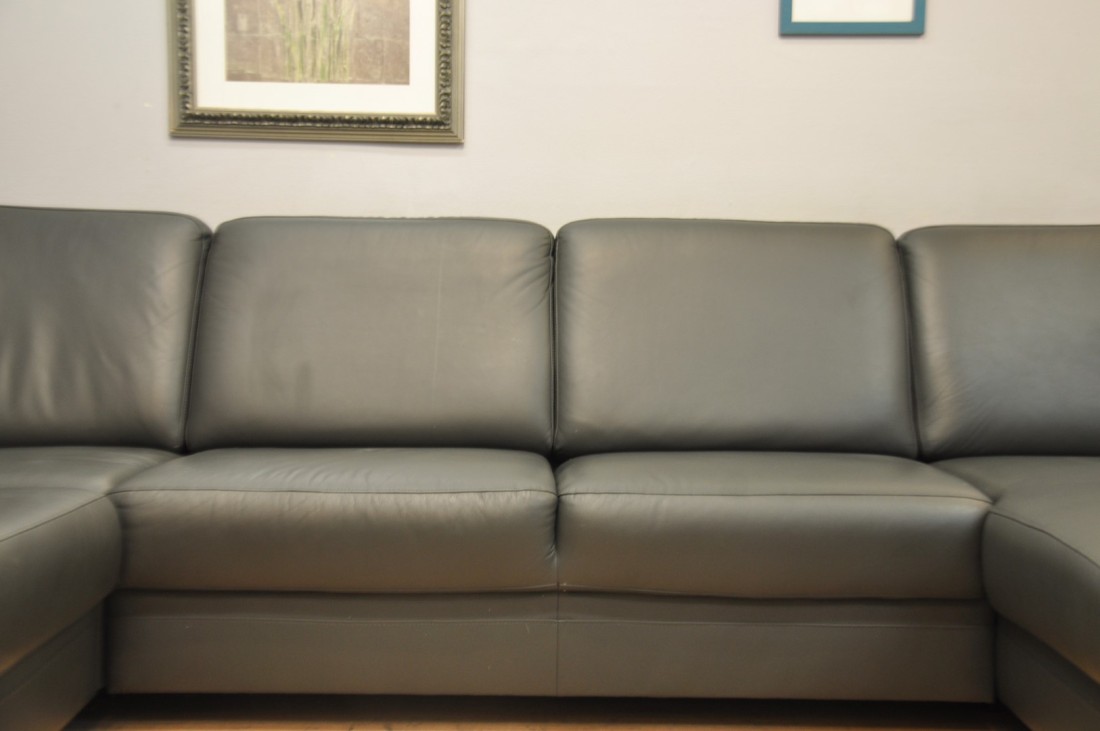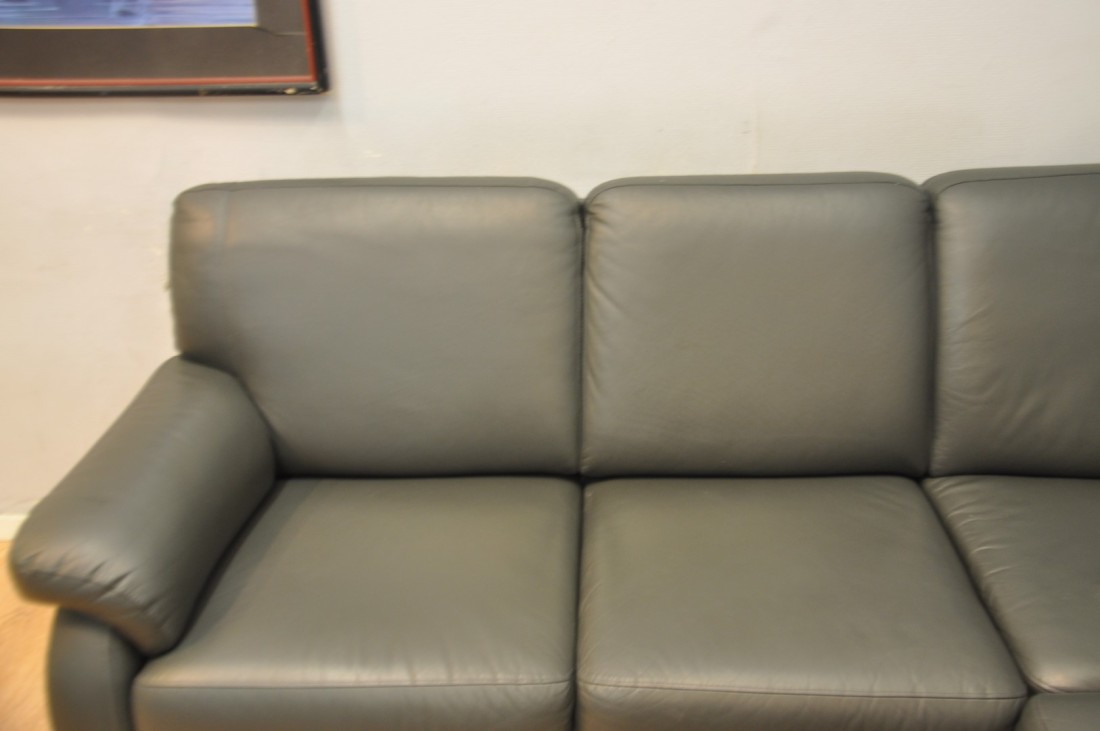 magnifique salon en vrai cuir de couleur tirant sur le gris de style carré moderne