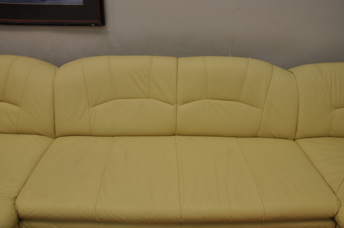 très beau salon en vrai cuir de couleur beige