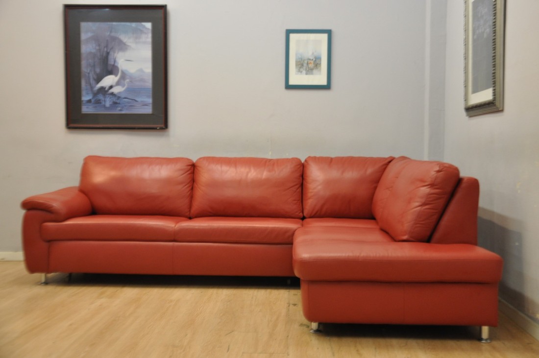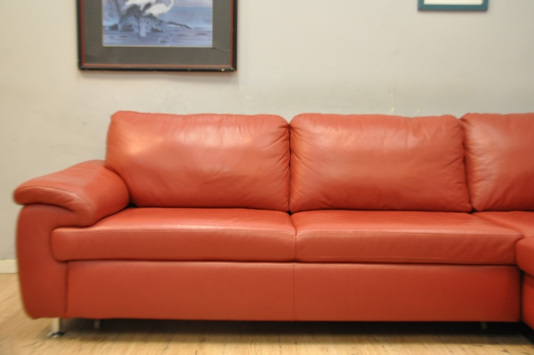 magnifique salon en vrai cuir de couleur rouge