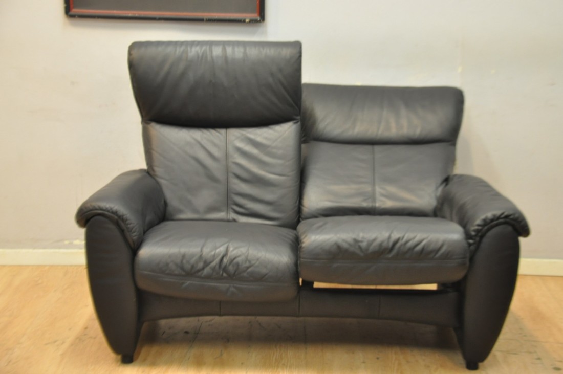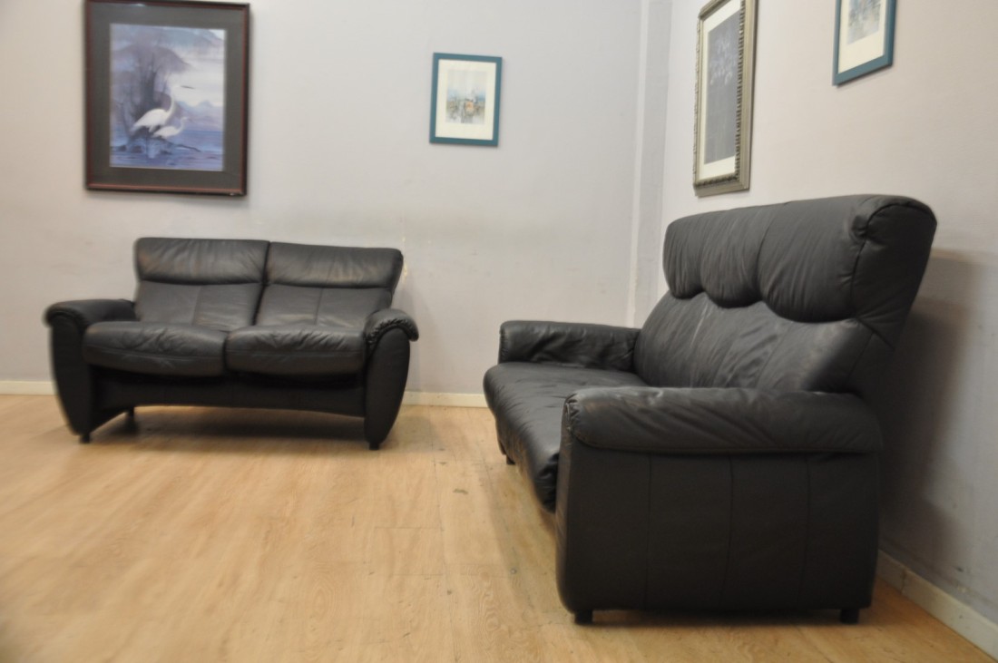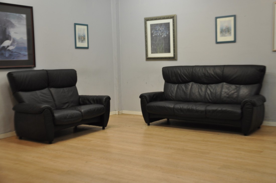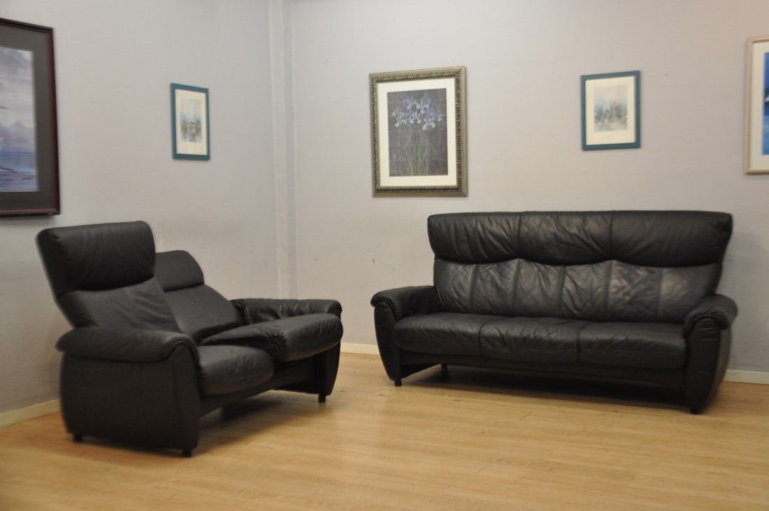 Très beau salon CUIR 3+2 Relax Noir hauts dossiers