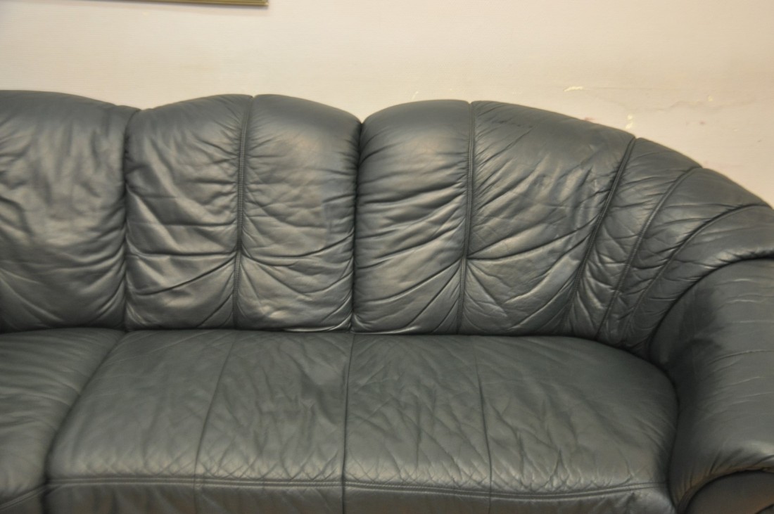très beau salon en vrai cuir de couleur vert foncé