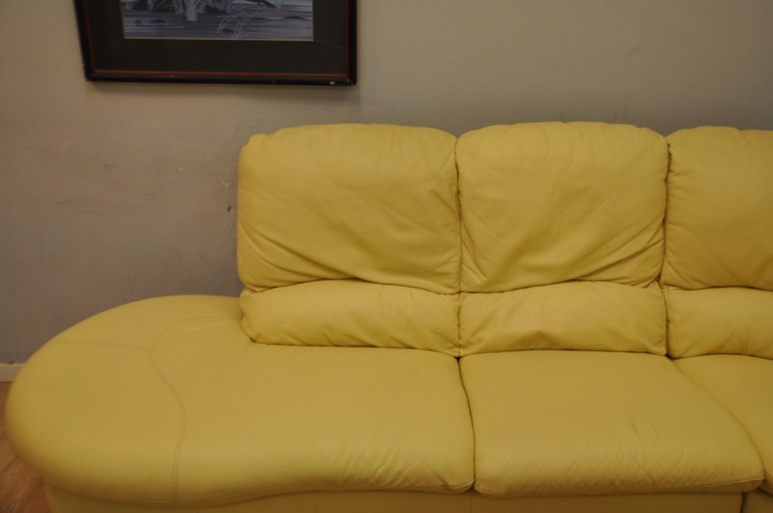 très beau salon en vrai cuir de couleur beige crème plus clair que sur les photos