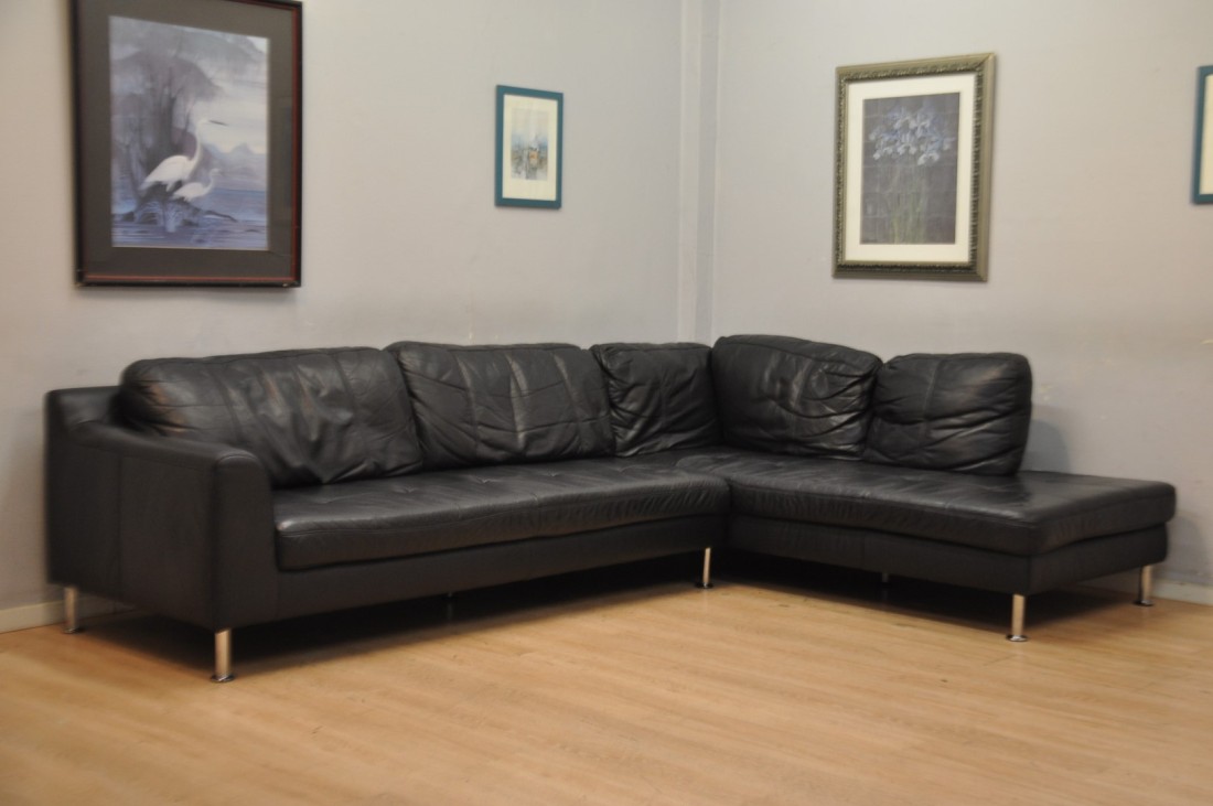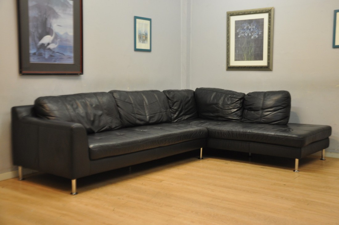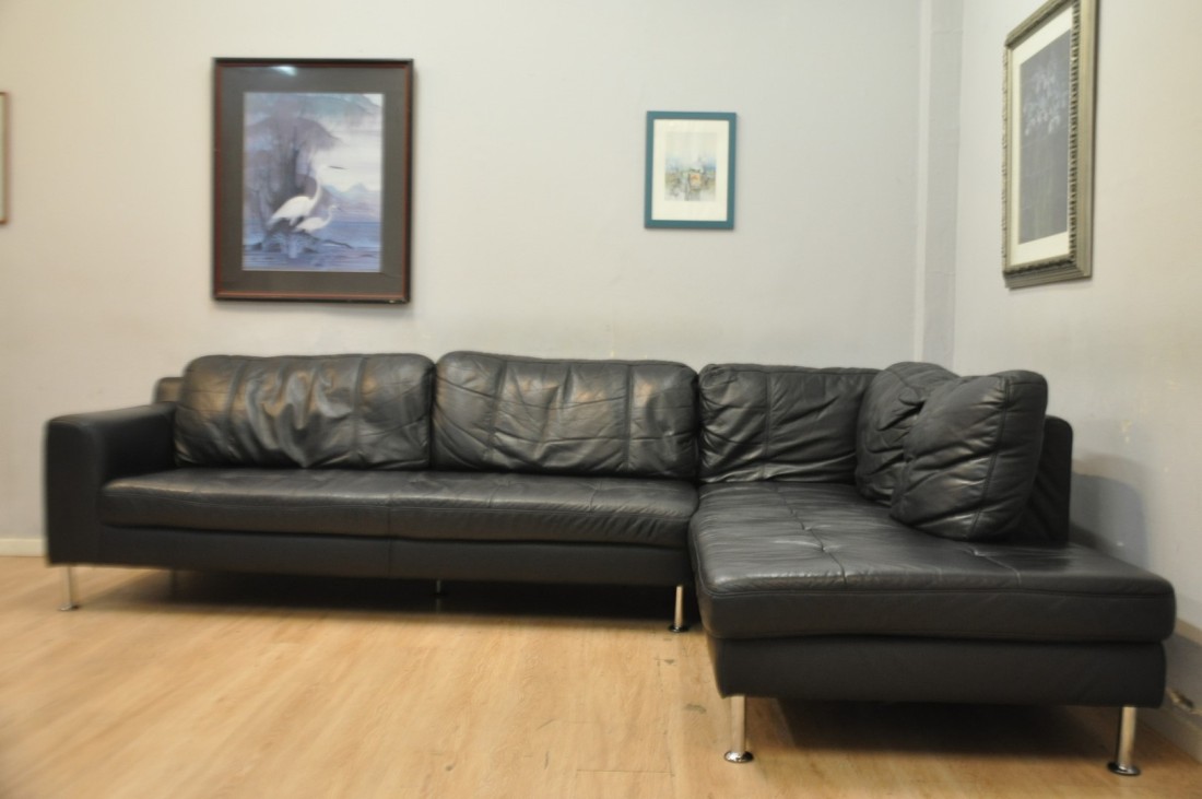 Très beau salon CUIR 310x210cm carré NOIR moderne