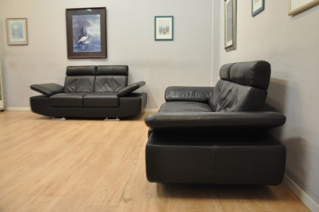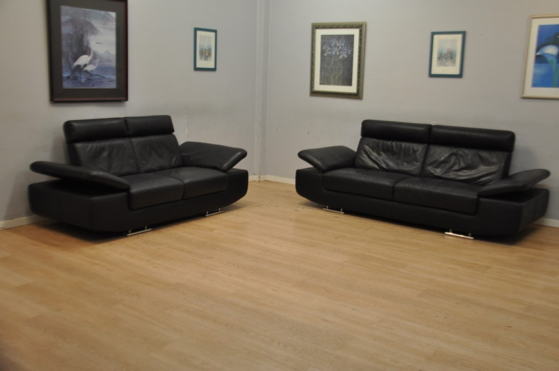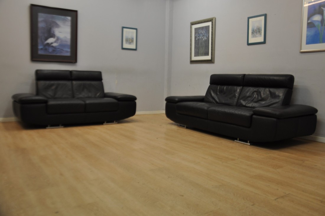 Très beau salon CUIR 3+2 hauts dossiers NOIR moderne