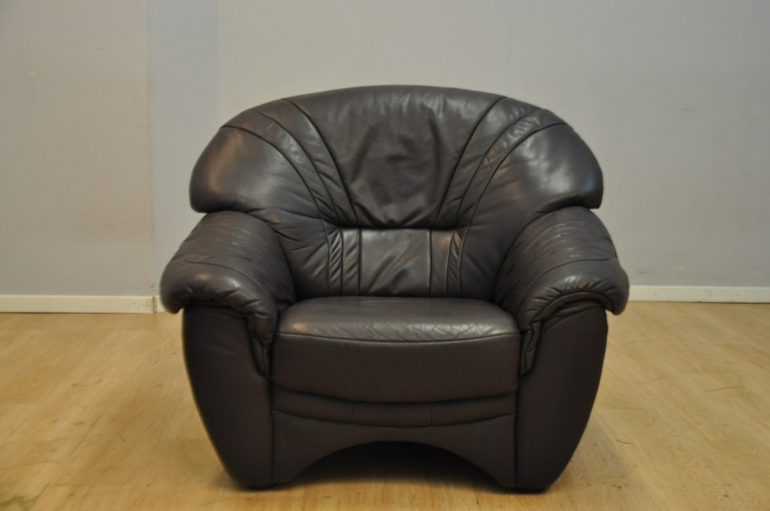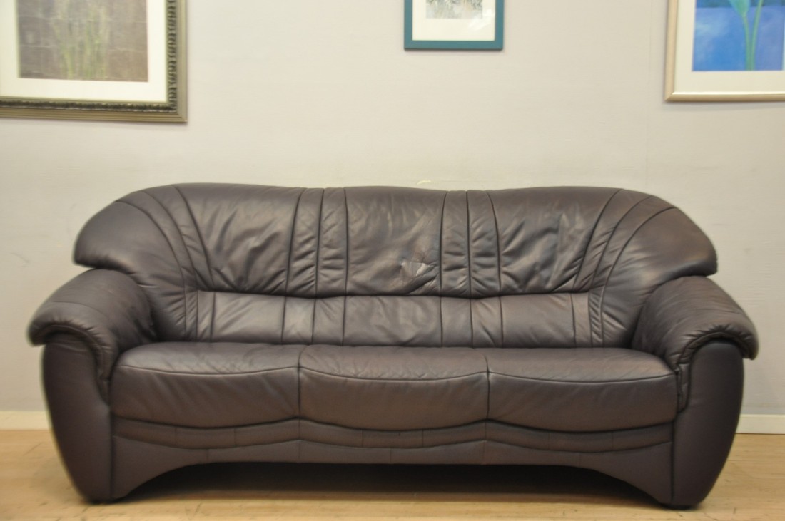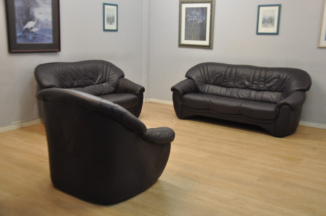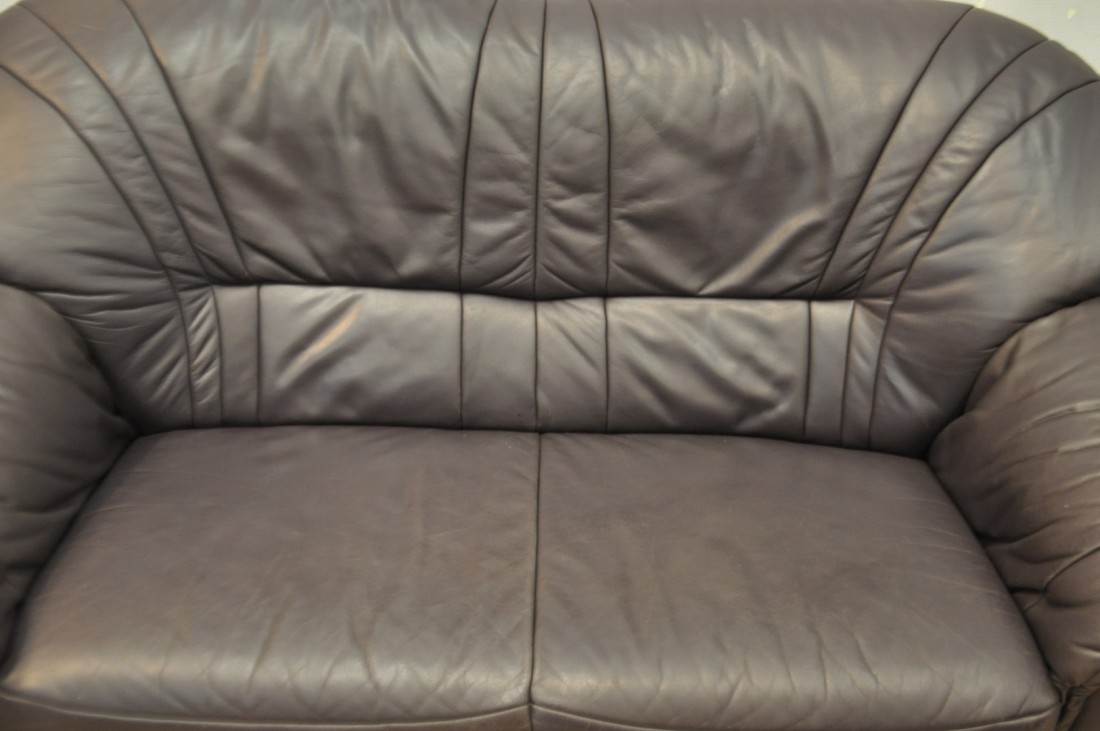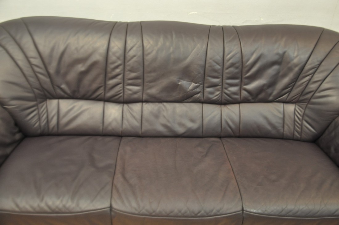 beau salon en vrai cuir de couleur brun aubergine